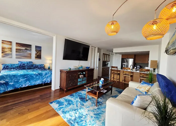 Ocean & Marina View Suite 아파트는 이올라니 궁전에서 차로 10분 이내의 거리에 있는 가족에 친절한 숙소입니다. 이 숙소에는 1개의 침실, 1개의 욕실과 부엌이 마련되어 있습니다.